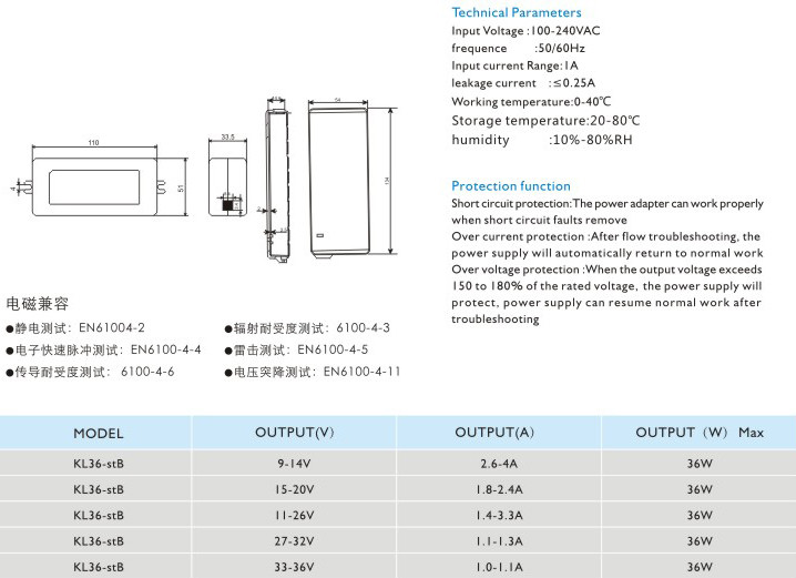 過流保護:過流故障排除后,電源將自動恢復正常工作 過壓保護:當輸出電壓超過額定電壓的150~180%時,電源將保護,故障排除后電源能恢復正常工作 輸入電壓:100-240VAC 頻率:50/60Hz 輸入電流:1A 漏電電流:<0.25A 工作溫度:0-40℃ 貯藏溫度:-20-80℃ 濕度:10%-80%RH" />